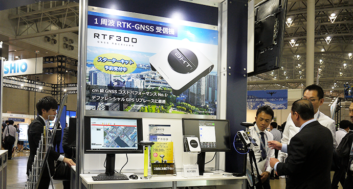 2019年のAKTブースでは、パネルと実機の展示、簡単なデモンストレーションを行い、パートナー企業様との協業も全面に打ち出させて頂きました。なかでも『i-construction』に対応した製品には多くの注目が集まりました。