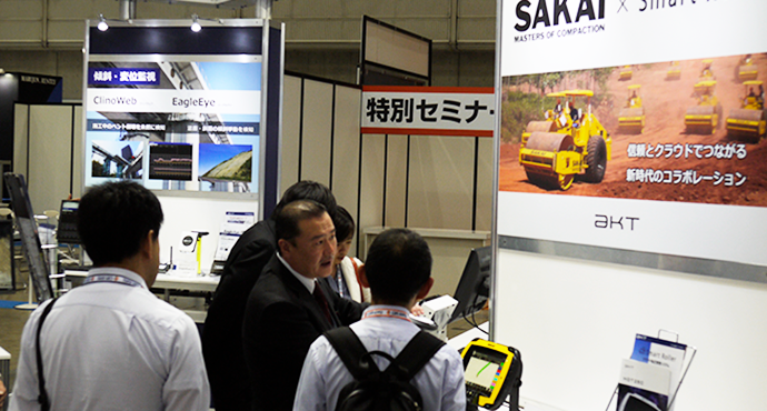 AKTブースの様子を、『SmartRoller クラウド型転圧管理システム』『SmartPile クラウド型地盤改良管理システム』とともに掲載頂きました。