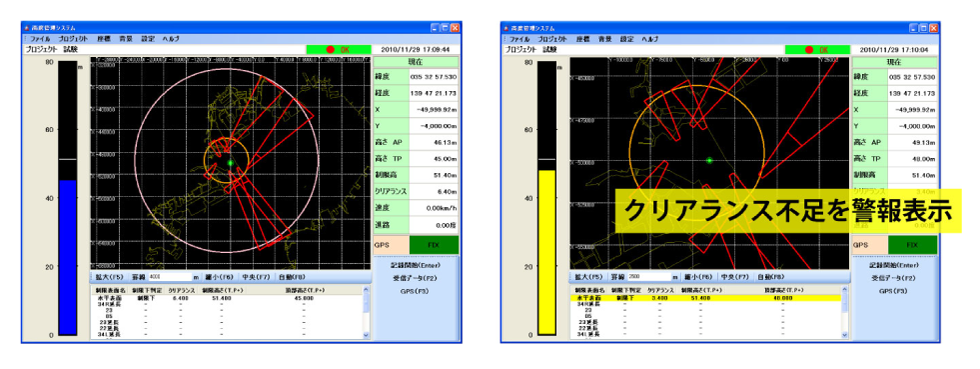 - 制限表面、現在位置・高さ、地形図、見取り図のビジュアルなリアルタイム表示