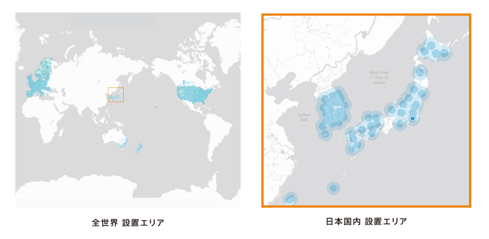 PointOneの基地局は全世界で2,000基以上整備されており、GNSS補正情報配信サービスの中では世界最大規模となります。世界中様々な都市で使える共通規格を採用し、高精度測位を必要とする幅広い業務に貢献しています。日本国内においては、我々AKTが2024年より基地局整備を担っており、各地でサービスがご利用いただけるよう準備を進めております。(2025年10月現在)