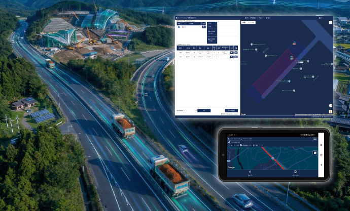 SmartTracking(スマートトラッキング)は、VasMap(バスマップ)の次世代モデルとして登場した、タブレット端末を用いた車両の運行支援システムです。ダンプや業務車両のダッシュボードにタブレットを設置するだけで、位置情報をもとに「どの車両が、どこで、何をしているか」をリアルタイムに管理でき、ドライバーへは音声ガイダンスを用いて注意喚起を行います。